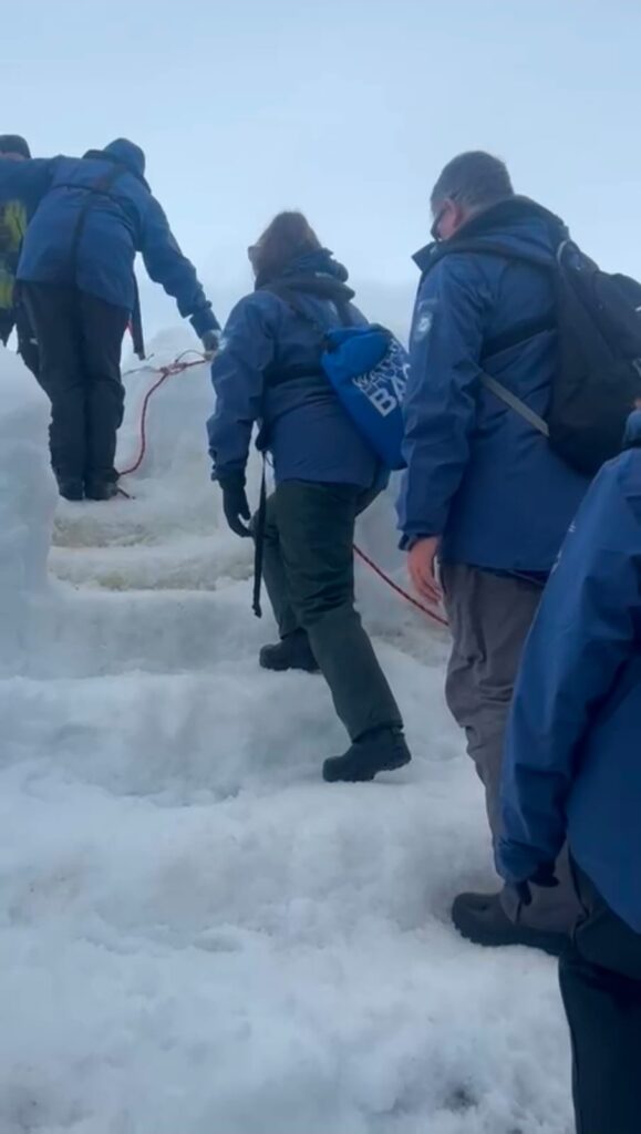 In the afternoon we got to land on Stonington Island, where Edith “Jackie” Ronne lived for over a year, becoming the first woman to overwinter in Antarctica. The snow was so deep that the expedition team had to shovel some steps for us!