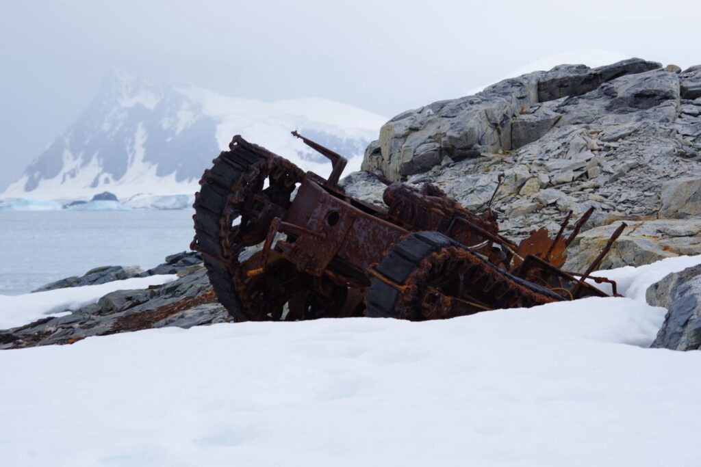On this island there were an American and a British abandoned bases. The British base still had the cages for the husky dogs, as their main exploration was done by dog sledges over snow and ice, while the American scientists explored from the skies, as apparently they had planes which could land on the water. There were also the remnants of two tanks nearby, and their profile was in stark contrast with the pristine landscape behind them.