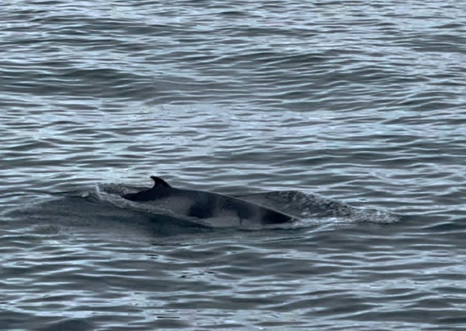 After a data processing session, we went back outside to face the sea. With 20 minutes to go until the end of the shift (and dinners already on our minds), we had a beautiful sighting – minke whale to port! This time we were ready: phones in hand, videos already rolling, we were finally able to record it as it surfaced again right next to the ship, allowing us to admire its lovely dark- and light-grey coloration. What a perfect and exciting ending to today!!
