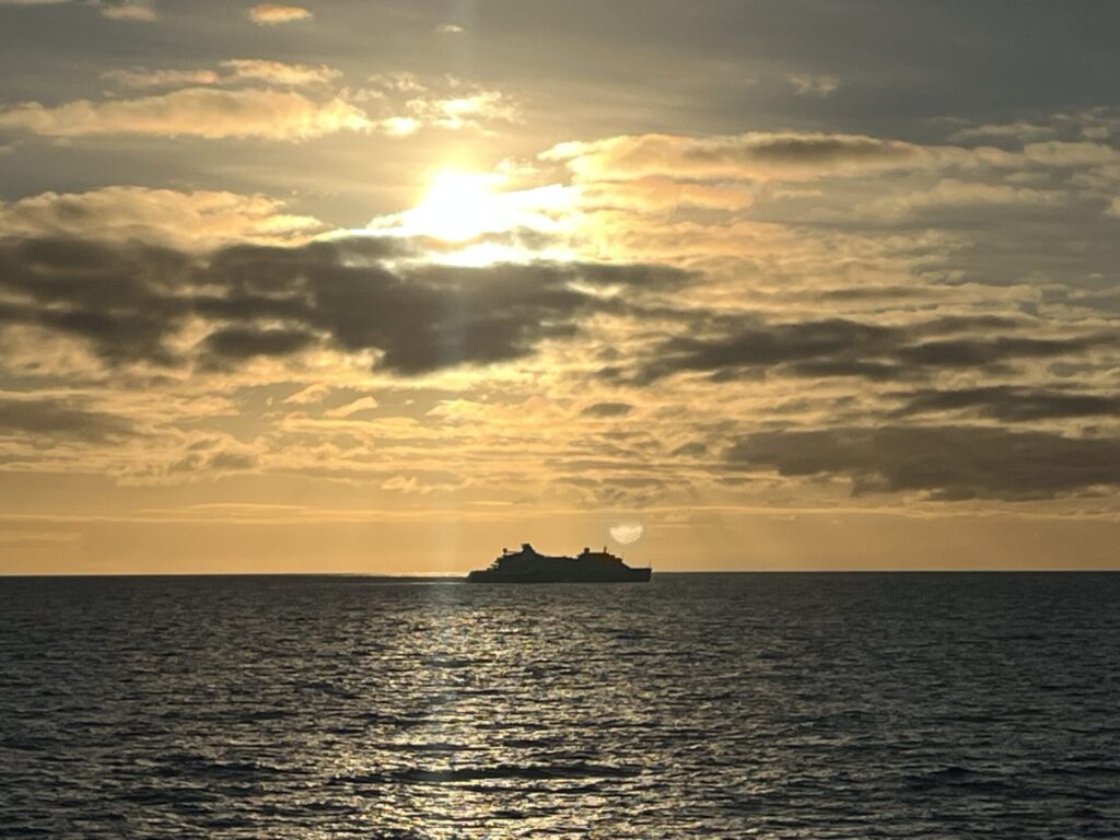 It was an early start this morning, with surveys beginning at 7am to make the most of our journey across the Bransfield Strait towards Deception Island. The marine mammal survey group were lucky enough to spot several fin whales far off in the distance. Their blows were visible against the horizon, and we watched hopefully, wishing they might come closer for a better look. Sadly, they stayed just out of reach. Even so, seeing them at all felt incredibly special and was a reminder of how lucky we are to be in such a remarkable place.